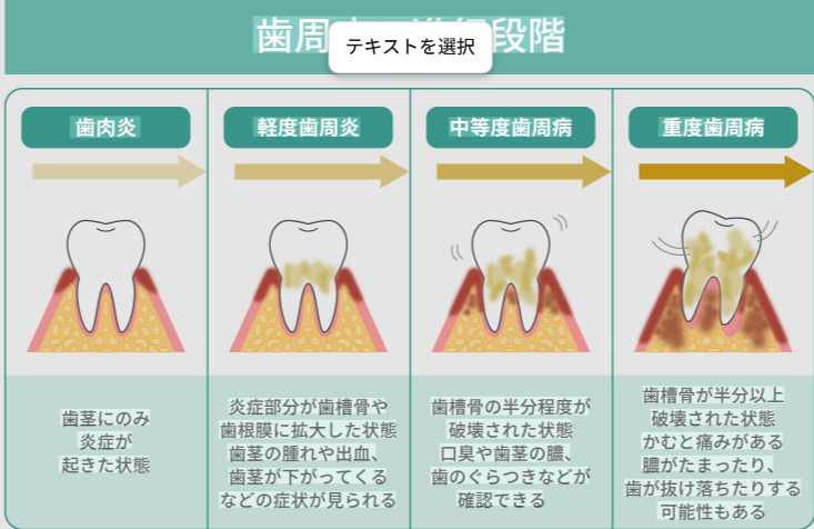 歯周病は、歯を支える骨や歯ぐきが少しずつ壊れていく病気です。